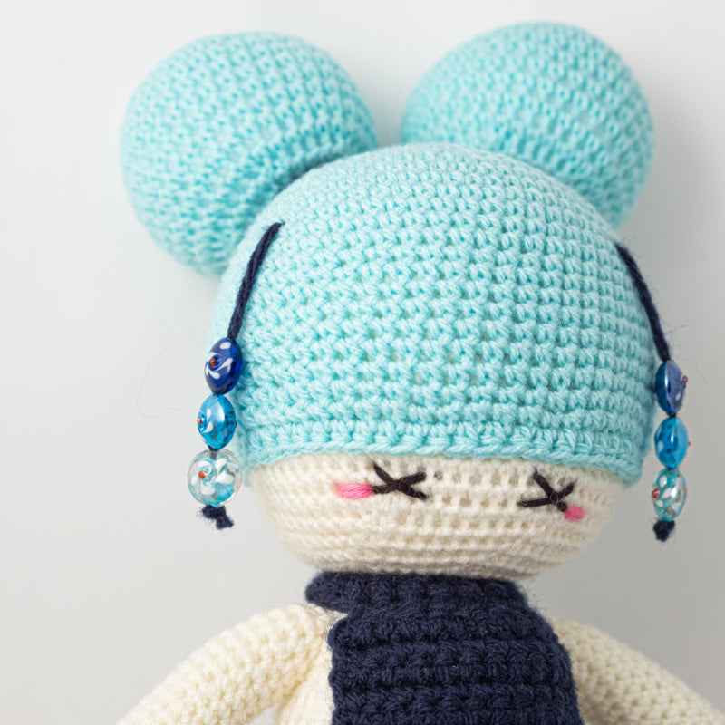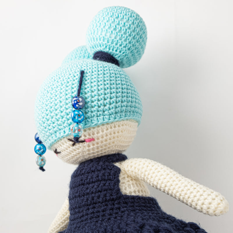 BIANCA è realizzata ad uncinetto in acrilico HB con perline in vetro soffiato.